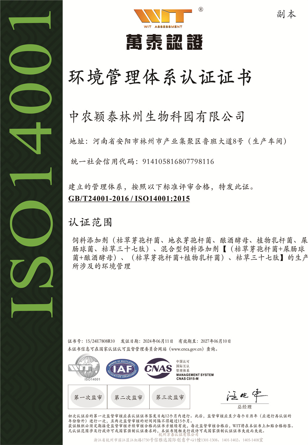 環境管理體系認證證書