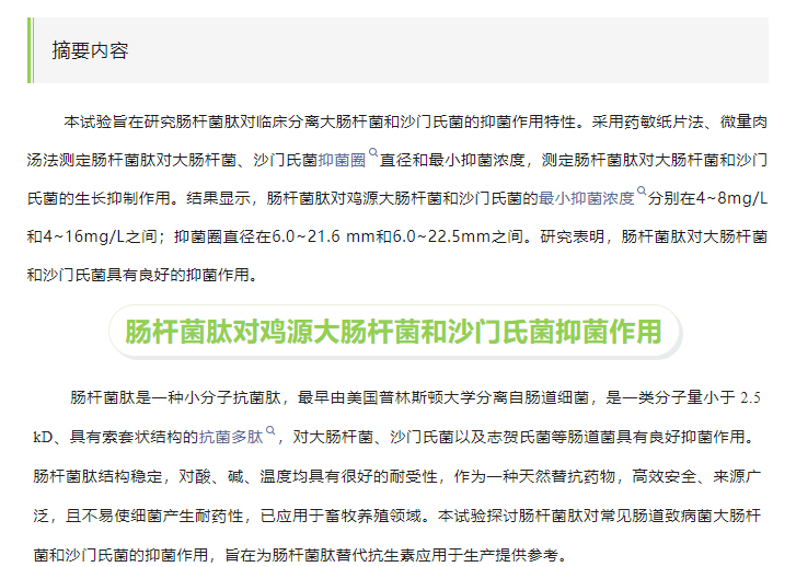腸桿菌肽對雞源大腸桿菌和沙門氏菌抑菌作用